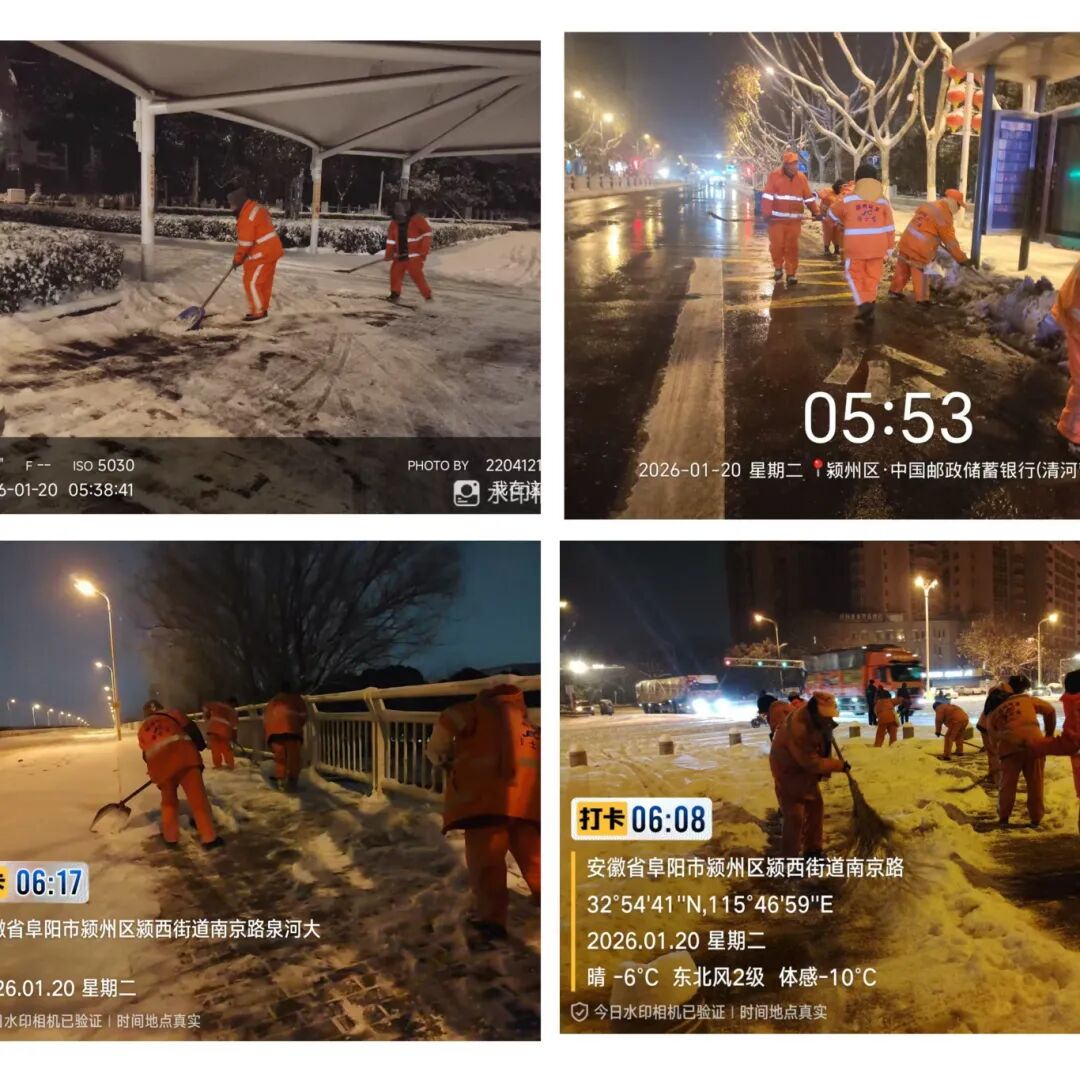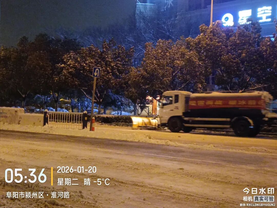 1月19日,安徽2026年首场大范围寒潮如期而至,当晚阜阳市气象台发布暴雪蓝色预警信号。对于大多数阜阳人来说,这只是个需要提前设置闹钟、准备厚衣服的寻常冬夜。而在阜阳的街头,另一群人已经连续工作了数小时——佳士成环境科技有限公司阜阳分公司的除雪队员们,他们手中挥舞的雪铲和身旁轰鸣的除雪车,构成了这座城市抵御风雪的第一道防线。