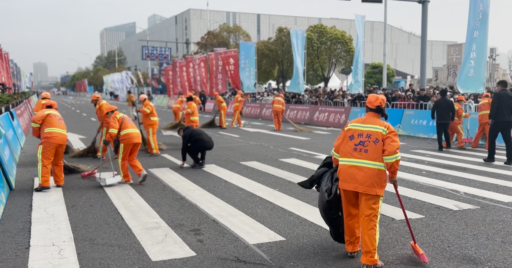赛后“极速还原”:跑者散去,城市依然清爽